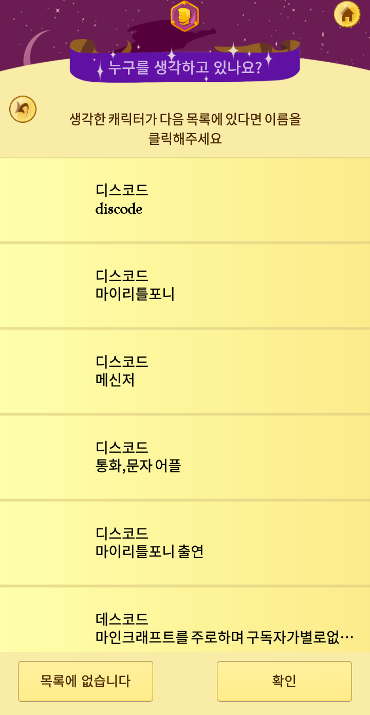 쉽게말해 모바일 게임처럼 이용할수 있는 스무고개라고 생각하시면 됩니다. (물론 PC에서도 가능합니다.)